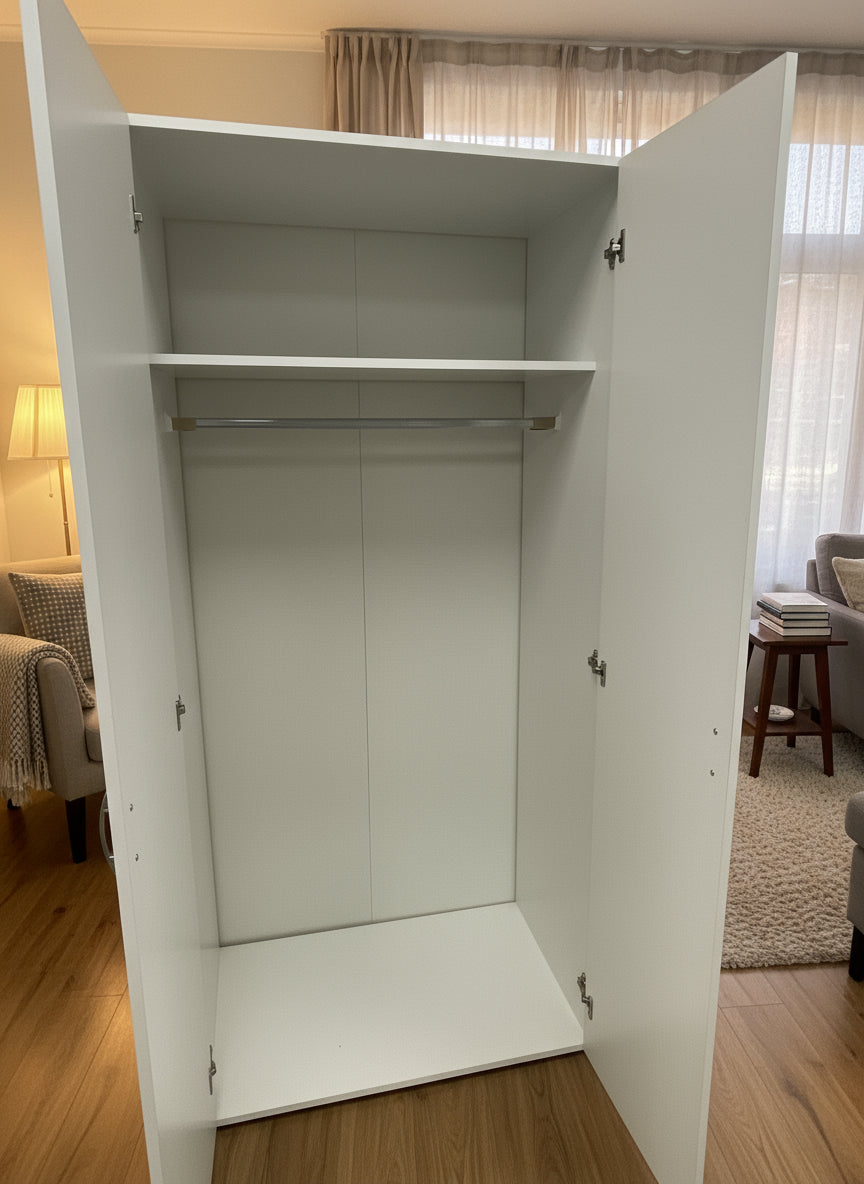 Transforma tu dormitorio en un espacio organizado y con estilo con nuestro armario de 2 puertas. Este elegante mueble combina funcionalidad y diseño para satisfacer todas tus necesidades de almacenamiento. Con 2 puertas equipadas, siempre lucirás impecable. En el interior, en la parte superior encontrarás una balda para organizar tus prendas dobladas, además de un perchero para colgar las prendas. Nuestro armario de dormitorio ofrece todo lo que necesitas, sin comprometer el estilo.