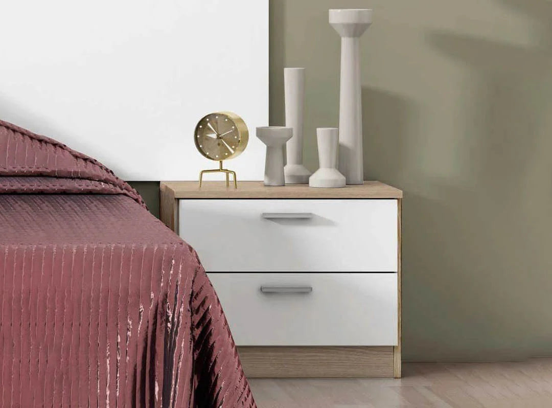 Optimiza tu espacio y añade un toque de elegancia a tu dormitorio con nuestra mesita de noche Couple con 2 cajones. Este practico mueble no solo ofrece almacenamiento conveniente para tus elementos esenciales junto a la cama, sino que también realza la estética de tu espacio. Los dos cajones proporcionan un espacio organizado para tus pertenencias personales, manteniéndolas al alcance de tu mano. Fabricada con materiales de calidad, esta mesita de noche combina funcionalidad y estilo en un diseño compacto. La mesita de noche Couple forma parte de la gama Dormitorio Couple. Es de facil montaje.